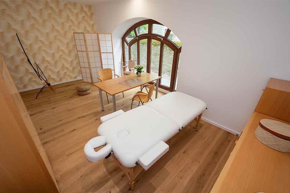 Für die Stimmtherapie und PNF-Therapie nutzen wir den großzügigen Raum mit einer Therapieliege.